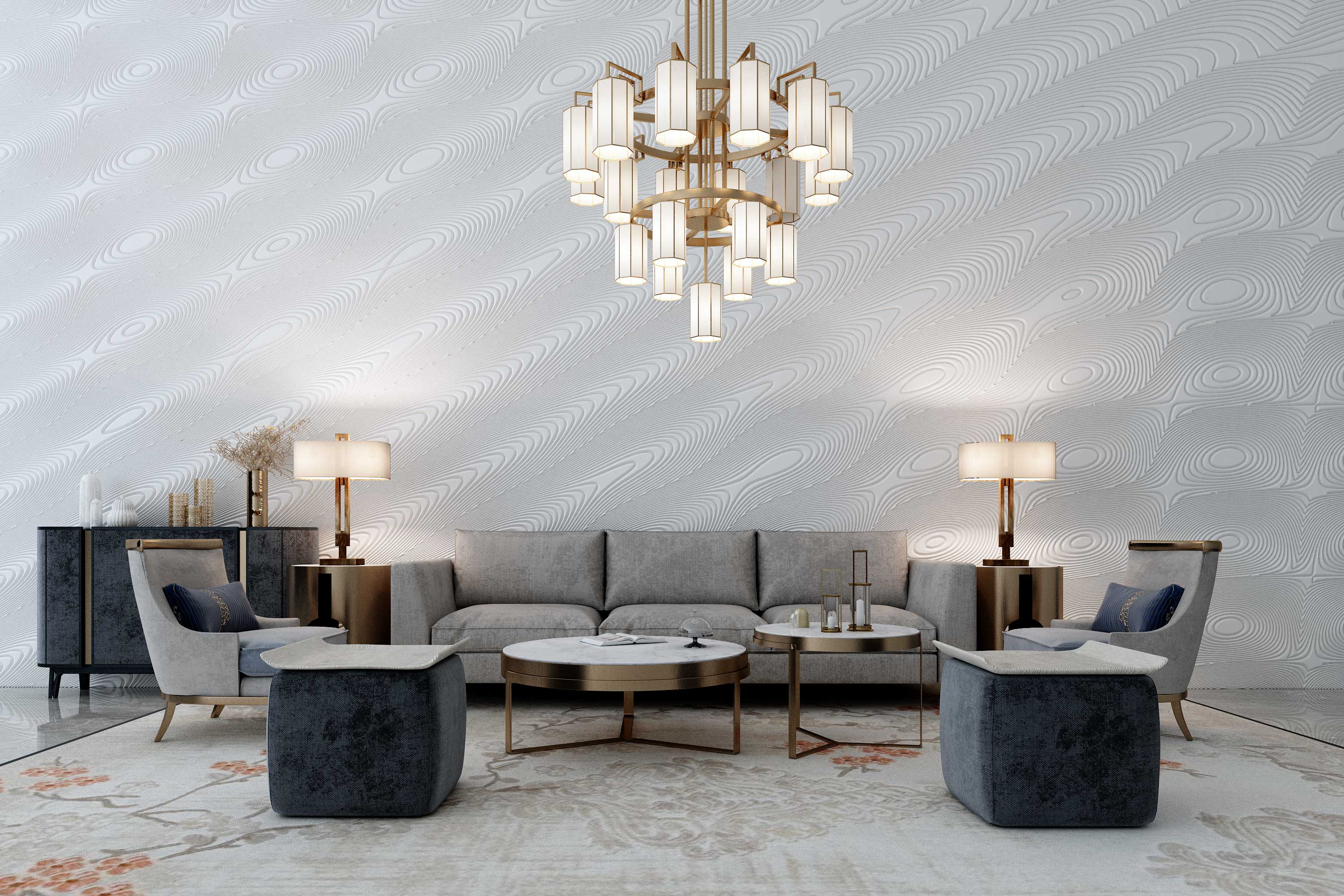 Moire effect created by compounding and interfering whirling patterns.