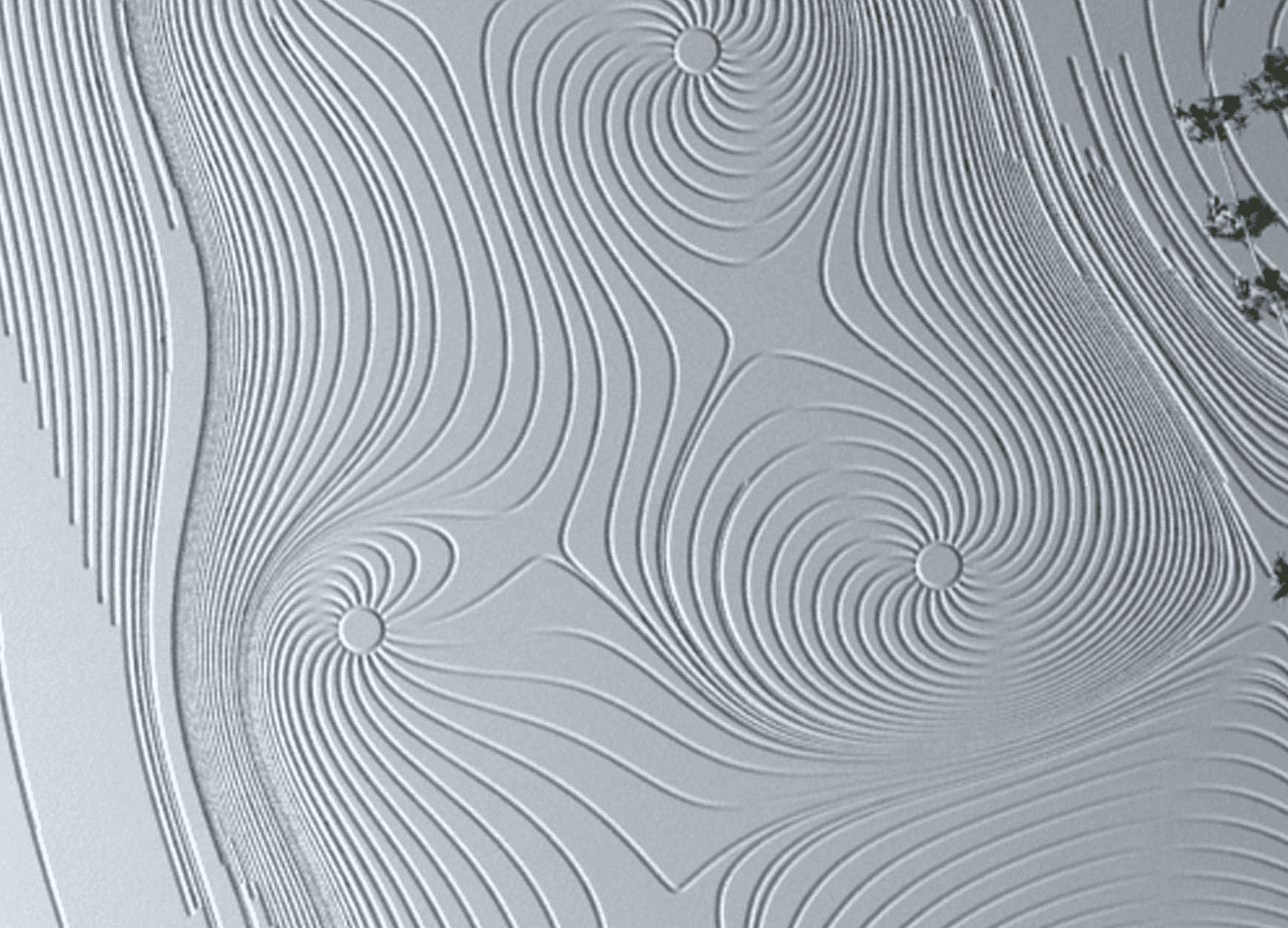 Moire effect created by compounding and interfering whirling patterns.